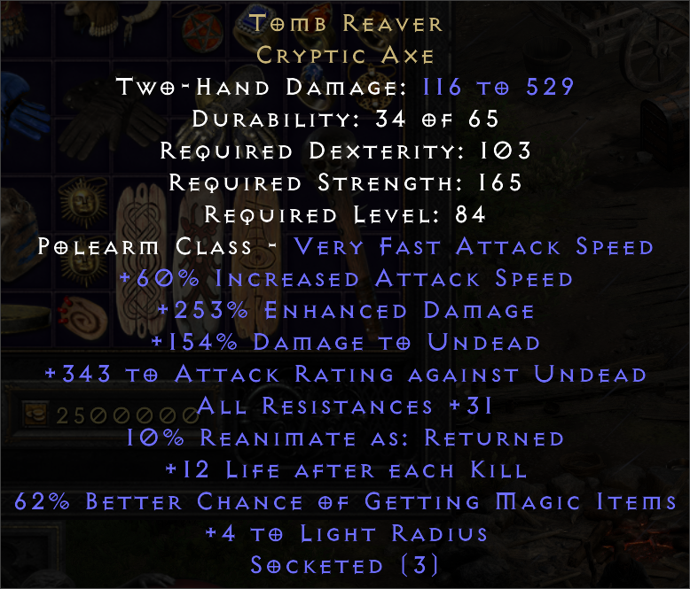 Hello. Saw your trade at https://diablo2.io/trade/tomb-reaver-t1526944.html. Is this still available?