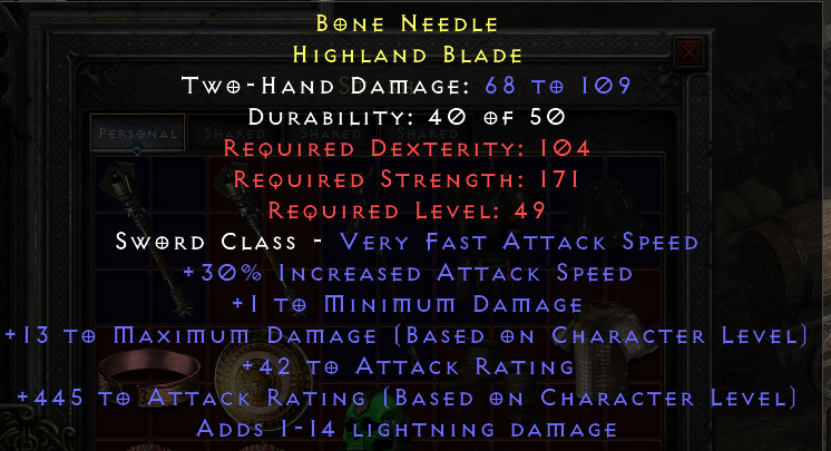 Both Charsifood. You need ethereal + at least 3 good mods (fools, 250+ ed, ias, max dmg, 2 os, ctc amp, ...) to compete with good runewords and/or uniques. Without that cheap runewords like Oath or Unbending Will are better.