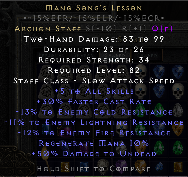 A while ago, my 8th TZ Andariel run dropped my lifetime first ever Darkforce Spawn. My Shield holy grail list is completed!