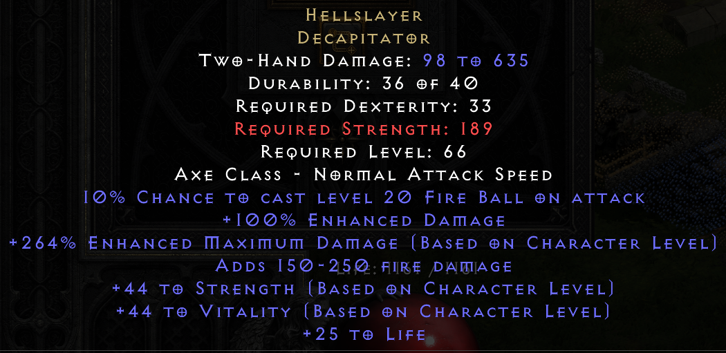 10% Chance to Cast Level 20 Fire Ball On Attack