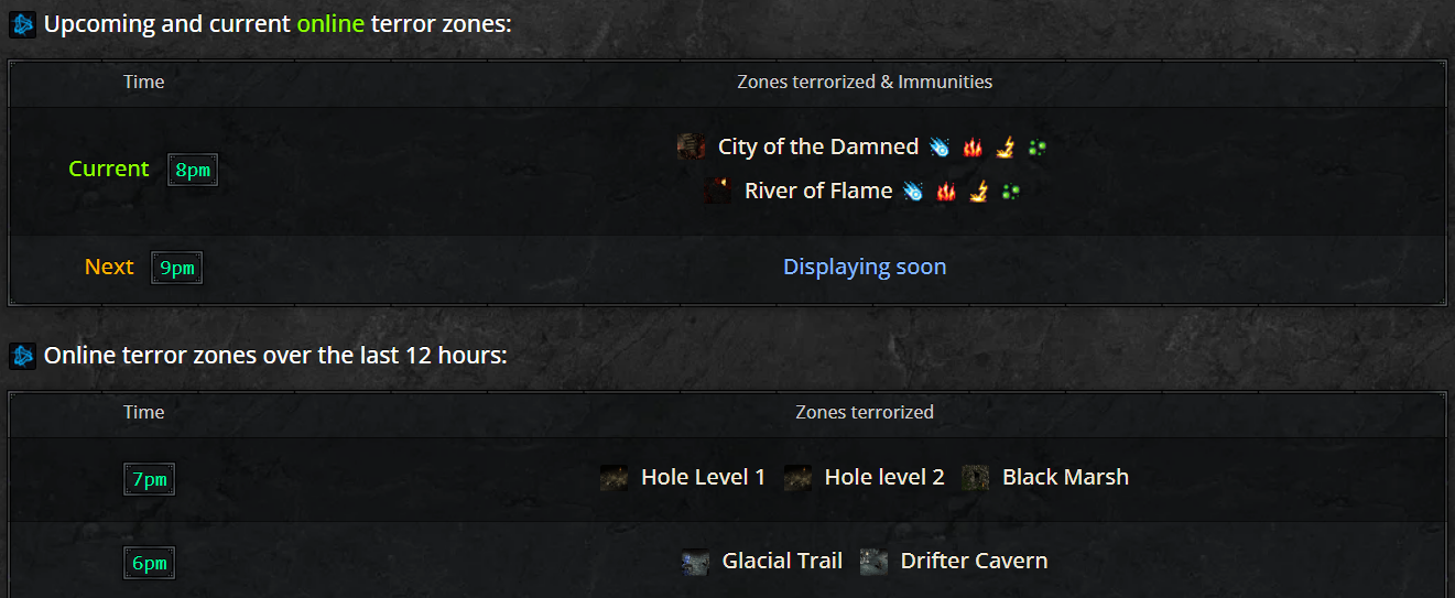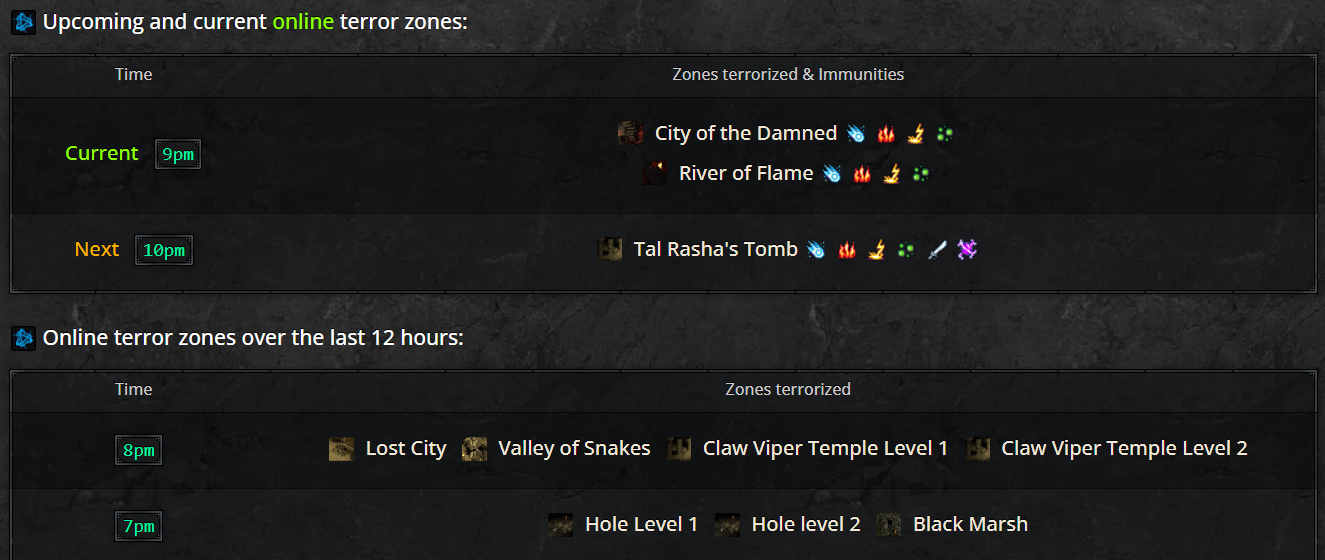 The following screenshot was taken at 9:02 pm: The following screenshot was taken at 09:06 pm: Note that both screenshots say that the current TZ is City of the Damned and River of Flame, but the first screenshot says it's