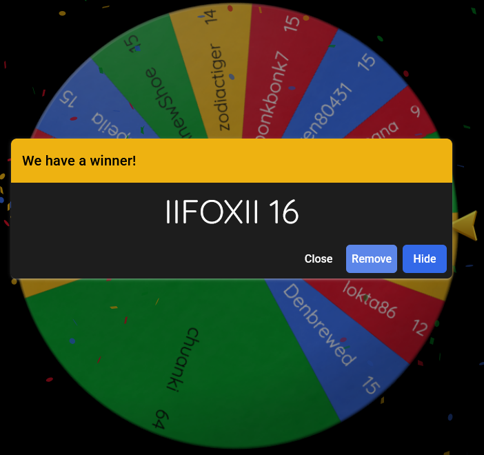 The winner of the seventy-seventh round iiiiiis.... @IIFOXII, who had a 6.87% chance to win! (out of 13 participants)