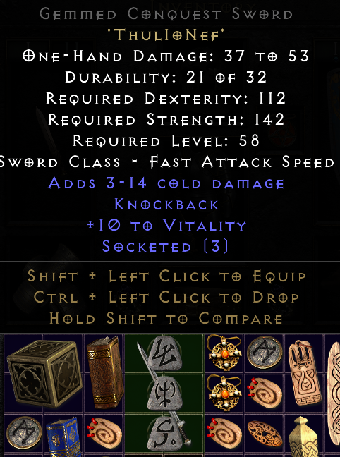The 40% Crushing Blow on Black immediately stands out, and the 15% IAS assists in administering them at a faster rate. However, the Knockback mod can potentially be annoying, given that this rune word can only be assembled in a melee weapon.