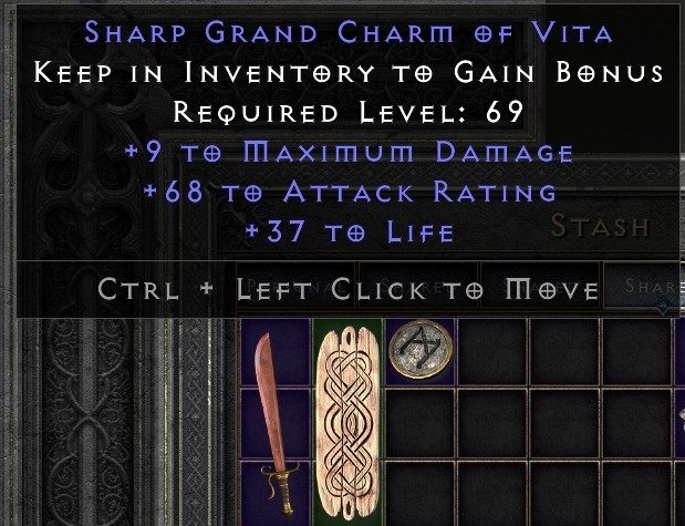 Did a cow run (not tz) picked up two grand charms along the way. Cain ID'd them and I couldn't believe my eyes when I realized they were both skiller's of sustenance. Even more strange is they both have the exact same amount of life.