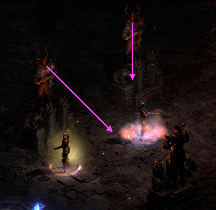 Try this, go to the River of Flame waypoint, then to the last statue on your left. Don't just look at the face or eyes but the horns on his head. Here's an image I just took. Notice the position of the horns.