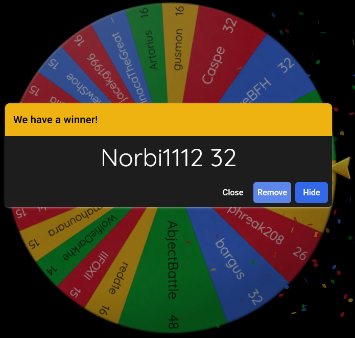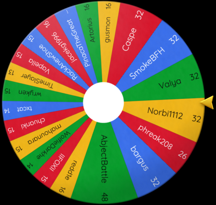 @choomba and @Norbi1112, you both have 48 hours to respond in here or DM me or you will forfeit your prize (if neither of them responds in time, I will re-draw this round).