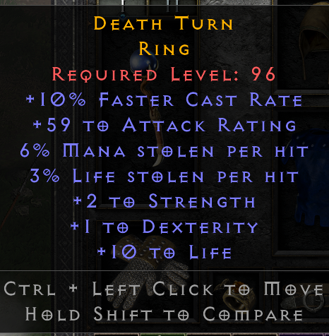 This sounds cool. I'll have to try your optimum range of 80-83. I'll probably stop getting results like the OP is stating. However, the internet teaches people to use Characters above 93 to gamble. Therefore to gain access to the best stats, attributes and rings/amulets. For many of my characters, the Terror Zones are above level 96. And the internet teaches people to be sure to gain rings and amulets from Terror Zones. Clearly the internet is 86.666666% inaccurate, right? But we've known this for years....Knappogue wrote: 1 hour agoBecause of the "of the Lamprey" suffix. When a crafted ring rolls this suffix (6% mana leech) it often comes with a level 95 or 96 requirement, depending on what other affixes rolled.