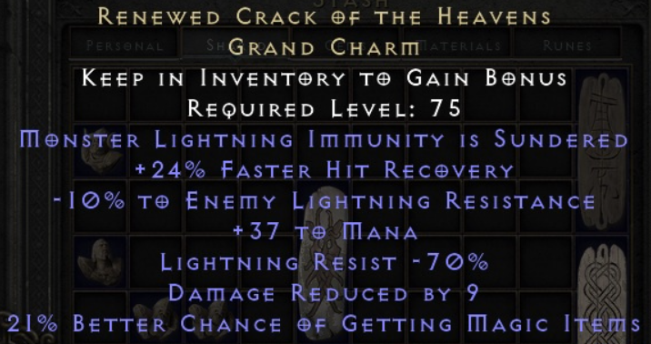 The ingredients (p Topaz, Fal, and southern WSS) are orders of magnitude easier to get than finding the latent sunder itself, so I hope Blizz can find some happy medium with all this mess. My suggestion would be to shift some of the weight to those crafting ingredients, make latent sunders a bit less rare and make renewed charms more expensive for people who want those extra stats.