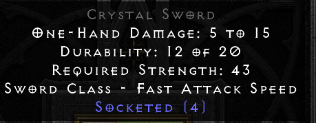 4 soc CS. For Spirit base N Sol rune or offerCrystal Sword