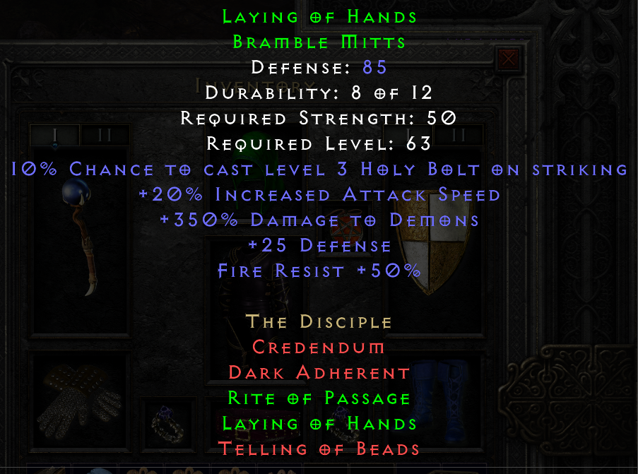 85 Def Laying of Hands Bramble Mitts: LF- 1 Pul or LF- 3 PAME