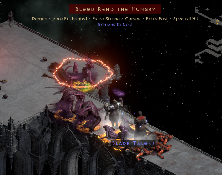 yeah this is what i meant.RackAnewShoe wrote: 2 hours agoThey were referring to the "immune to everything" balrogs on the way to Uber Izual.Blubbalutsch wrote: 2 days agoA5 Guest Monster Blunderbore or Mauler as Unique with Stone Skin and/or Cursed is what i use as a magic warlock because of crushing blow. Speeds up bosskills quiet significant. The increased liferegen also synergize with Prayer/Cure/Insight merc setup. Heralds did not even reduce them to 3/4 health so far. I don't use them terrorized, btw. Still good enough imo.