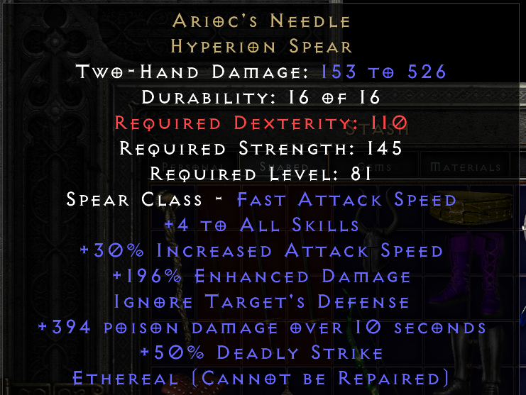 Hello. Saw your trade at https://diablo2.io/trade/arioc-s-needle-t1687732.html. Is this still available?