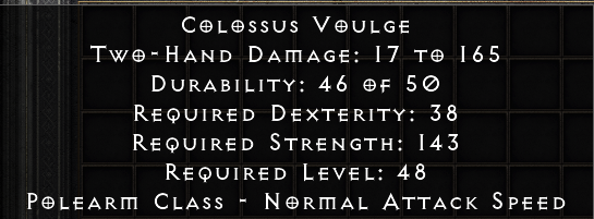 Hello. Saw your trade at https://diablo2.io/trade/colossus-voulge-t1690181.html. Is this still available?