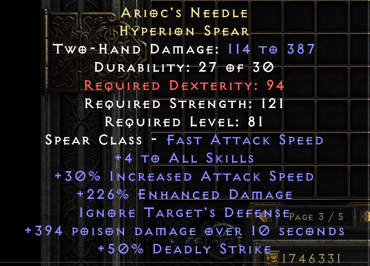 Hello. Saw your trade at https://diablo2.io/trade/arioc-s-needle-t1689528.html. Is this still available?