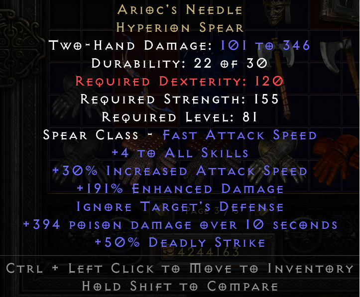 Hello. Saw your trade at https://diablo2.io/trade/arioc-s-needle-t1697118.html. Is this still available?