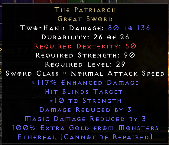 Hello. Saw your trade at https://diablo2.io/trade/the-patriarch-t1700178.html. Is this still available?