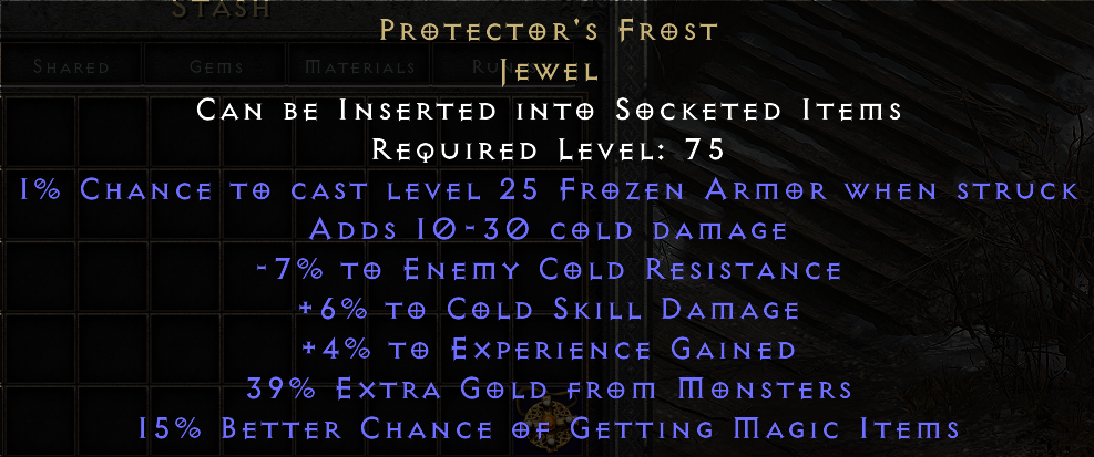 1% Chance to Cast Level 25 Frozen Armor When Struck