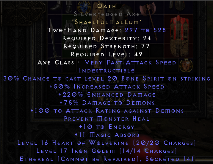 Hello. Saw your trade at https://diablo2.io/trade/oath-t1696761.html. Is this still available?