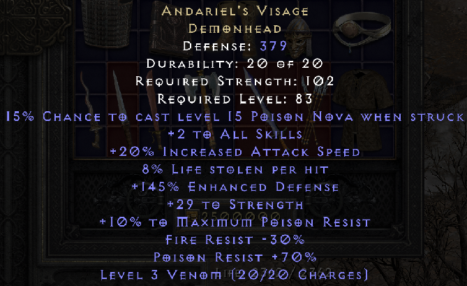 15% Chance to Cast Level 15 Poison Nova When Struck
