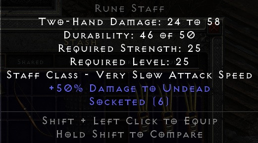 0 or 6 Sockets, needs to be clean without any +Sorc Skills