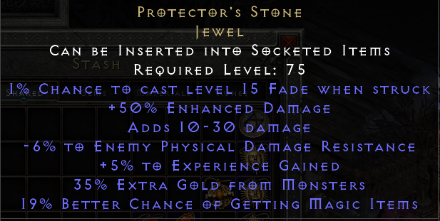 1% Chance to Cast Level 15 Fade When Struck