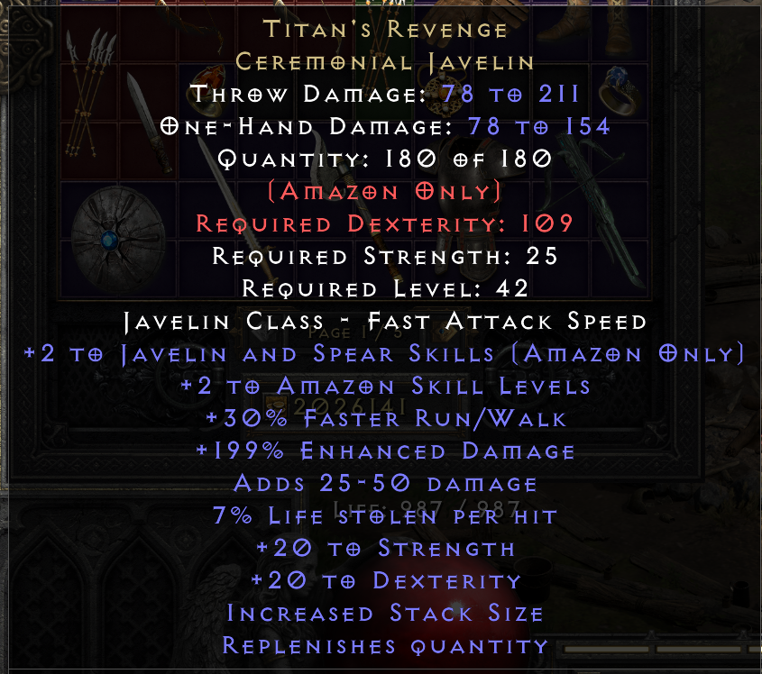 +2 to Javelin And Spear Skills (Amazon Only)