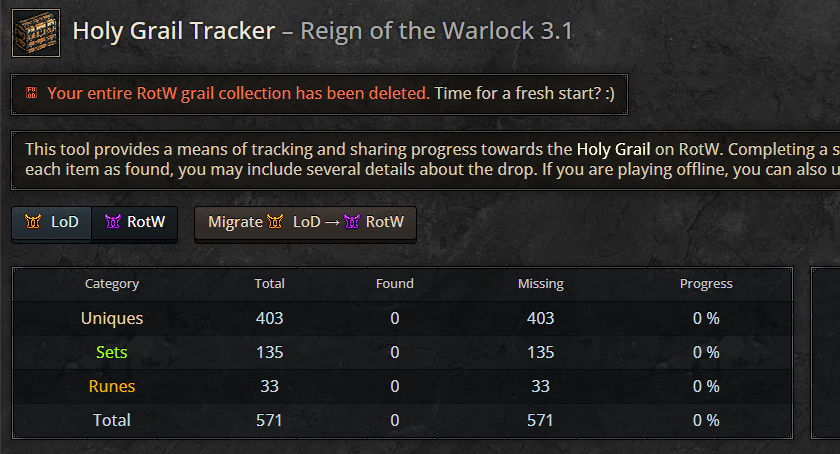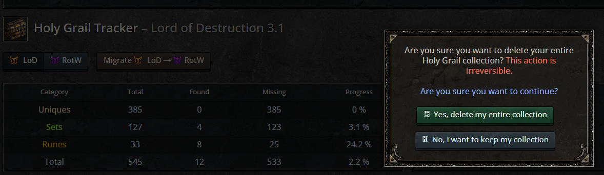 I cant delete my Holy Grail tracker