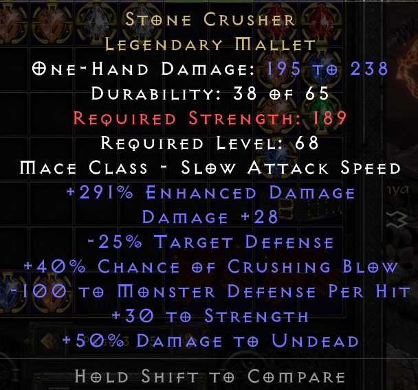 Hello. Saw your trade at https://diablo2.io/trade/stone-crusher-t1726532.html. Is this still available?