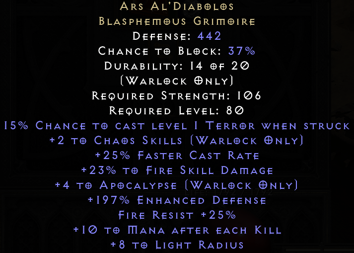 +2 to Chaos Skills (Warlock Only)