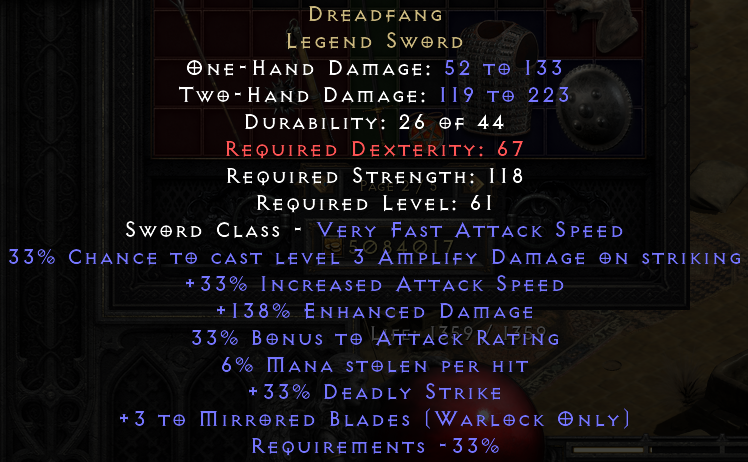 Hello. Saw your trade at https://diablo2.io/trade/dreadfang-t1727771.html. Is this still available?