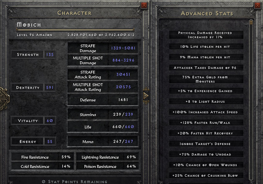 brownSys wrote: 4 hours agoNot great but not terrible. I use Guided Arrow on bosses. I do lots of Chaos runs and I can sometimes take out diablo before having to move to avoid his attacks. I can also take out dclone by equipping natures Peace. It takes quite a while but is perfectly doable.missusecel wrote: 12 hours agoHow does it fair vs ordinary bosses like Baal? I found Bowdon to be quite slow at killing bosses, especially without G-face. I find the arrow mechanic (need to refill or look for) bad, I believe what bowzons need is a quiver class of items that can roll resistance, flat damage, accuracy, ias and similar and some unqiue quivers with deadly strike, crushing blow, %dmg converted to elemental and similar. I think it would open a lot of possibilities without making bowzons op sine they are far behind javazons as well as any type of caster build.brownSys wrote: 19 hours agoMost of the tips here have been mentioned. Though I have a few to add.