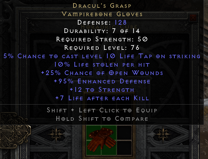 5% Chance to Cast Level 10 Life Tap On Striking