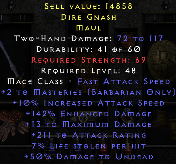 The rolls are too low and it's not ethereal. Just compare it to Oath which you can use with level 49.