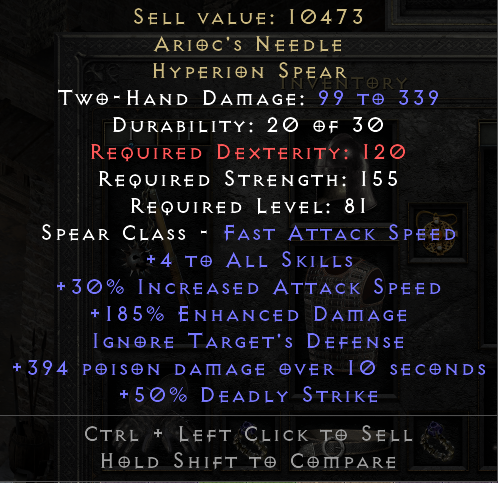 Hello. Saw your trade at https://diablo2.io/trade/arioc-s-needle-t1741432.html. Is this still available?