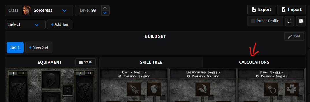 I also couldn't see the skill calculations, but I saw that they are on the same Calcs menu 👍