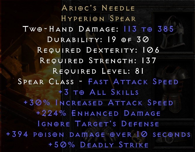 Hello. Saw your trade at https://diablo2.io/trade/arioc-s-needle-t1746517.html. Is this still available?