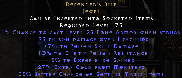 1% Chance to Cast Level 25 Bone Armor When Struck