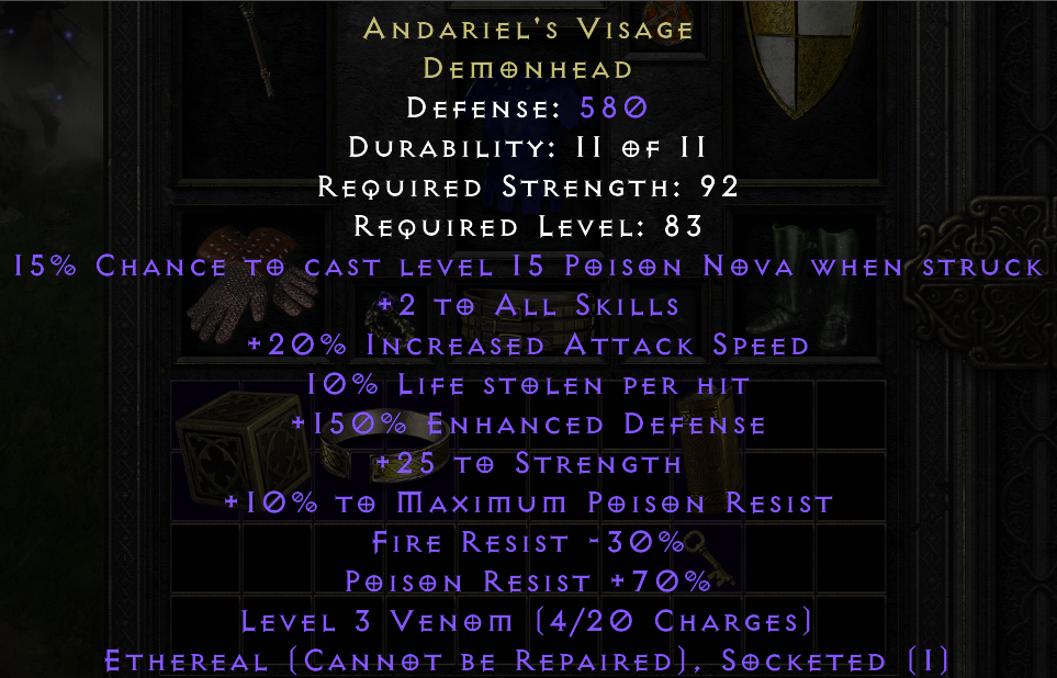 Hello. Saw your trade at https://diablo2.io/trade/andariel-s-visage-t1749783.html. Is this still available?