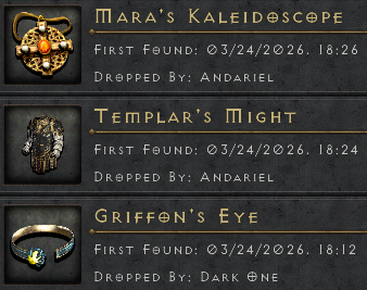 Wicked! In the 30 minutes of Andy farming, I also got a Mara's and a Templar's Might. The only thing we slightly mismatched is my Nature's Peace vs your Griffon's Eye, but I think we can all agree that's like neck to neck.