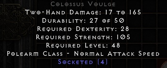 Hello. Saw your trade at https://diablo2.io/trade/colossus-voulge-t1759117.html. Is this still available?