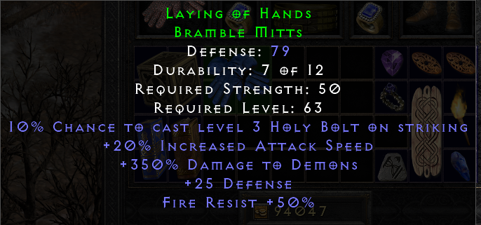 10% Chance to Cast Level 3 Holy Bolt On Striking