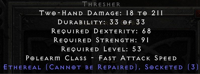 Hello. Saw your trade at https://diablo2.io/trade/thresher-t1761611.html. Is this still available?