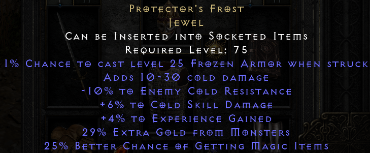 1% Chance to Cast Level 25 Frozen Armor When Struck