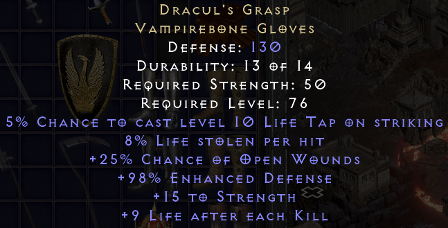 5% Chance to Cast Level 10 Life Tap On Striking