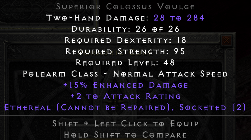 This does help, thank you!oOKIWIOo wrote: 3 days agoIf it alleviates your pain: I found an Eth. pair with 48 MF last week...Lava_Assassin wrote: 3 days agoHere I was, all excited for my first ever self-found War Travs. 45% too! Which would be an upgrade! But they are Eth...
