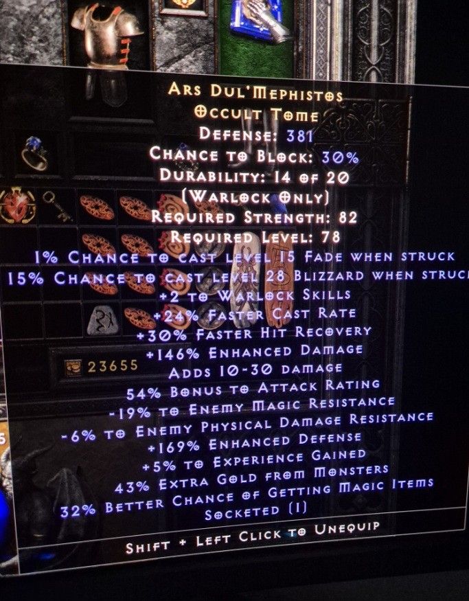 inside Protector's Stone with 44% ed -6% physical +5% exp