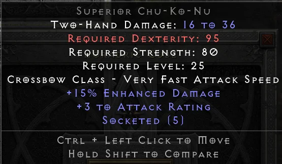 I am currently not able to find any value for a perfect superior Chu-Ko-Nu 5OS - closest was Mal on traderie, do you know what it is worth?