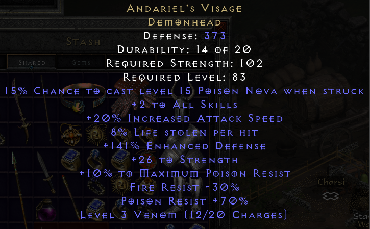 15% Chance to Cast Level 15 Poison Nova When Struck