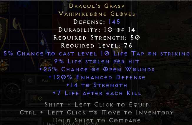 5% Chance to Cast Level 10 Life Tap On Striking