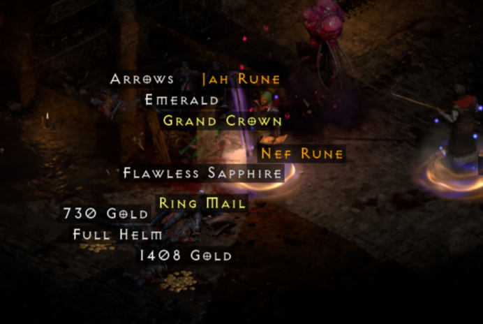 Countess cannot drop Jah. She has two drop tables. Her monster table goes up to Lo and her special rune table goes up to Ist. Your screenshot is a bit short on pixels, but it does appear there are other monsters (probably her minions) laying beside that Jah. They, weirdly enough, can drop a Jah.Stryder3 wrote: 1 hour agobeen spamming countess for keys and this dropped as you can see from the green countess body countessdroppedjah.PNG